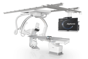 本装置は、新画像処理技術「αEvolve Imaging」(アルファ・イヴォルヴ イメージング)はディープラーニング技術(AI技術)を搭載しています。αEvolve Imagingは透視画像のノイズをリアルタイムに低減するとともに,ガイドワイヤー・冠動脈ステントなどのデバイスや造影血管のコントラストを高め視認性を向上します。また低線量の条件においてもカテーテル治療に求められる画質を維持し,患者の被ばく低減を実現します。